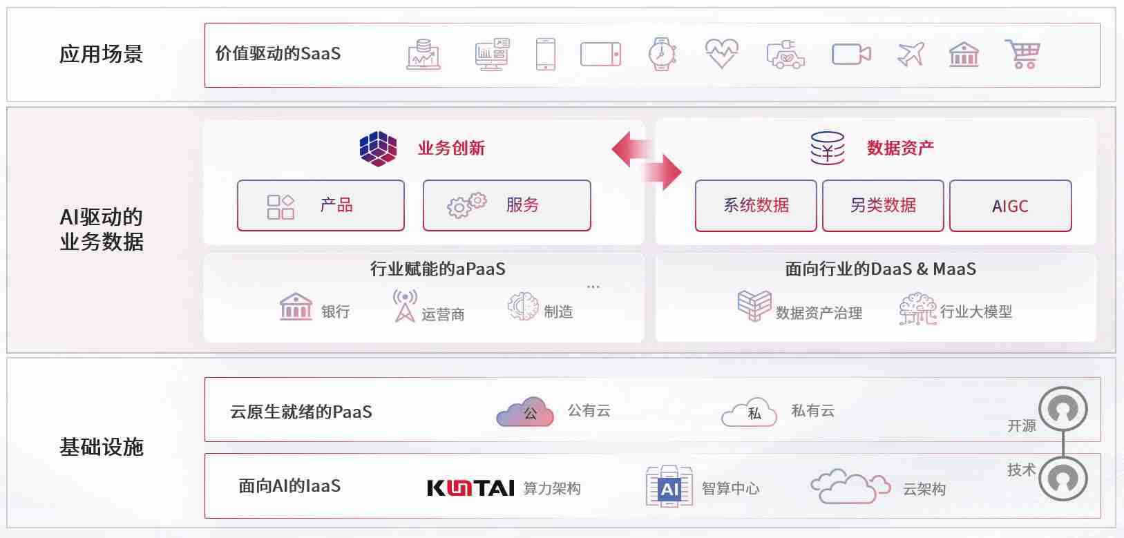 数字时代,,围绕企业数字化转型的关键要素,,,OK钱包数码开创性的提出数云融合战略和技术体系框架,,着力在云原生、、、、数字原生、、、、AI原生和信创产业上架构产品和服务能力,,,为处在不同数字化转型阶段的快消零售、、、、汽车、、、、金融、、医疗、、、、政企、、教育、、、、运营商等行业客户提供泛在的敏捷IT能力和融合的数据驱动能力,,,构建跨界融合创新的数字业务场景和新业务模式,,助力企业级客户建立面向未来的核心能力和竞争优势,,,,全面推动社会的数字化、、、、智能化转型升级。。。